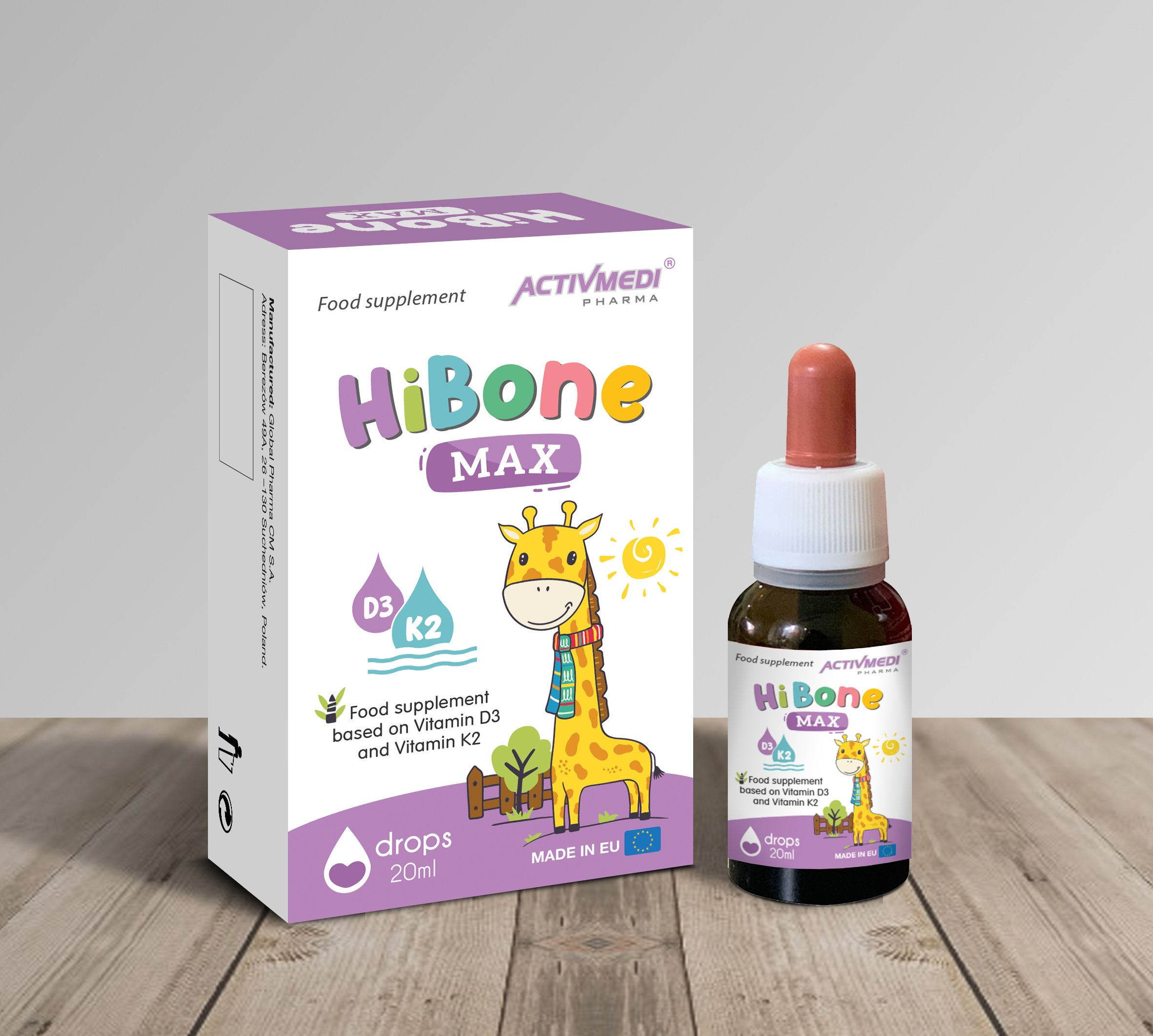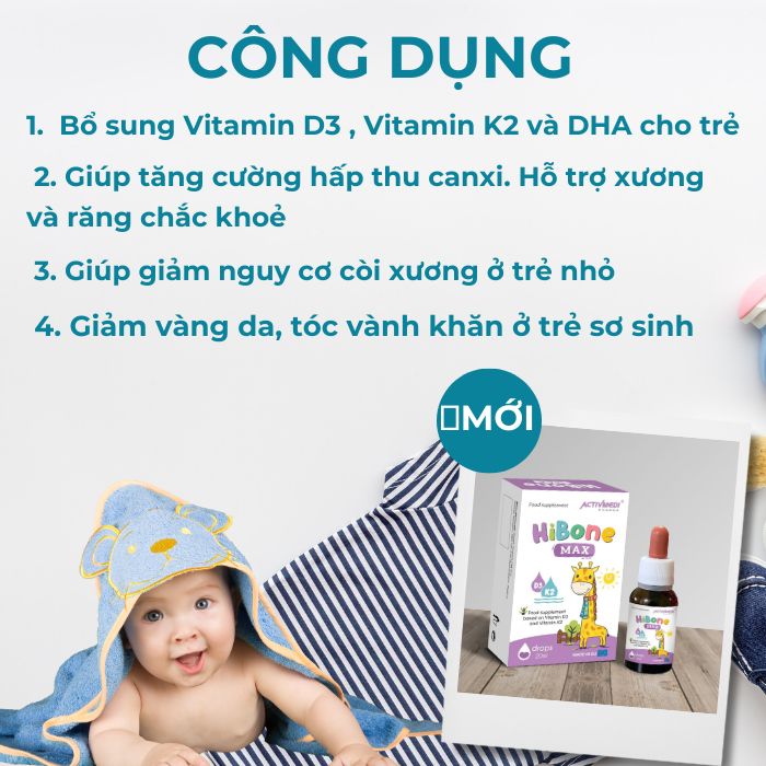 Vitamin D3k2 Nhỏ Giọt Tiện Dụng Hibone Max Bổ Sung Thêm DHA Dùng Được Cho Trẻ Từ Sơ Sinh Giúp Hấp Thu Canxi. Hỗ Trợ Xương, Răng Chắc Khoẻ Sản Phẩm Nhập Khẩu Nguyên Chai Từ Châu Âu Lọ 20 ML